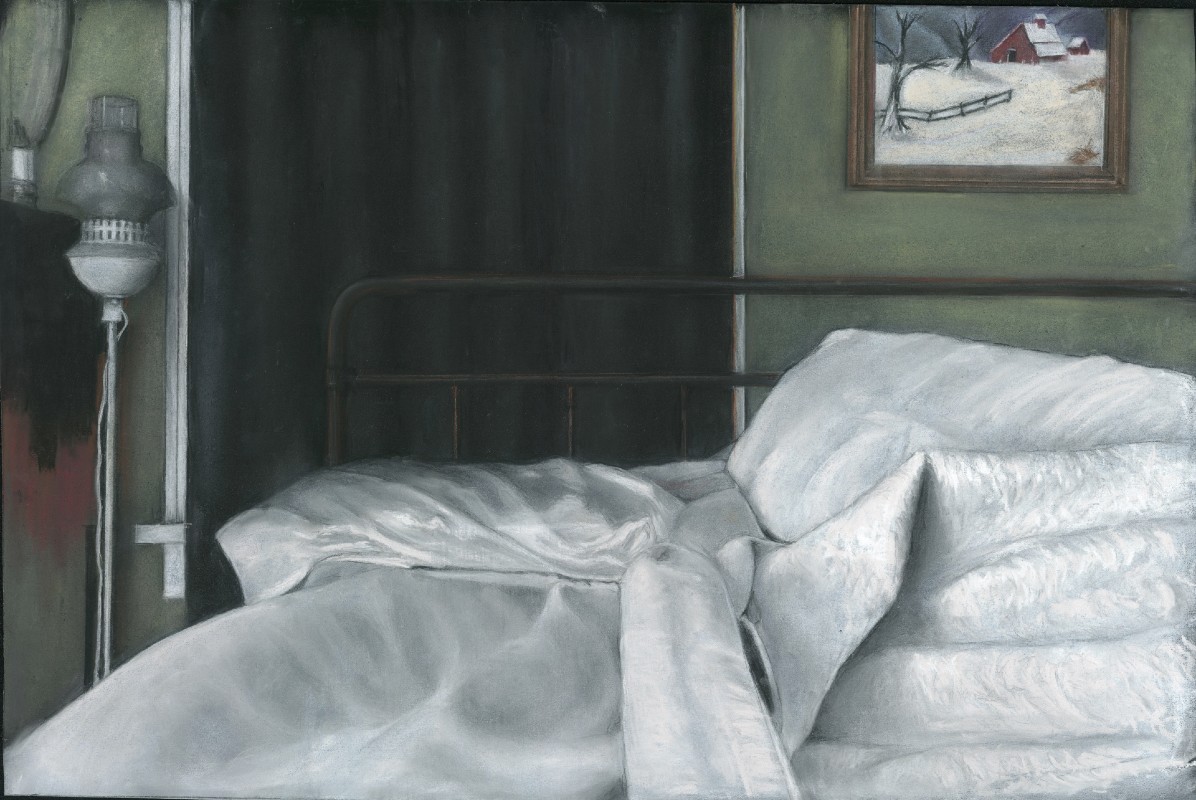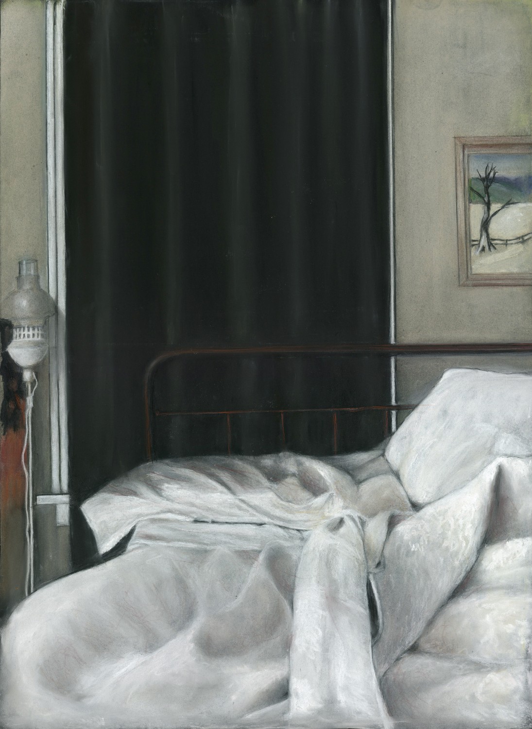 Bedroom no. 2, pastel and black acrylic, 17″x 23″