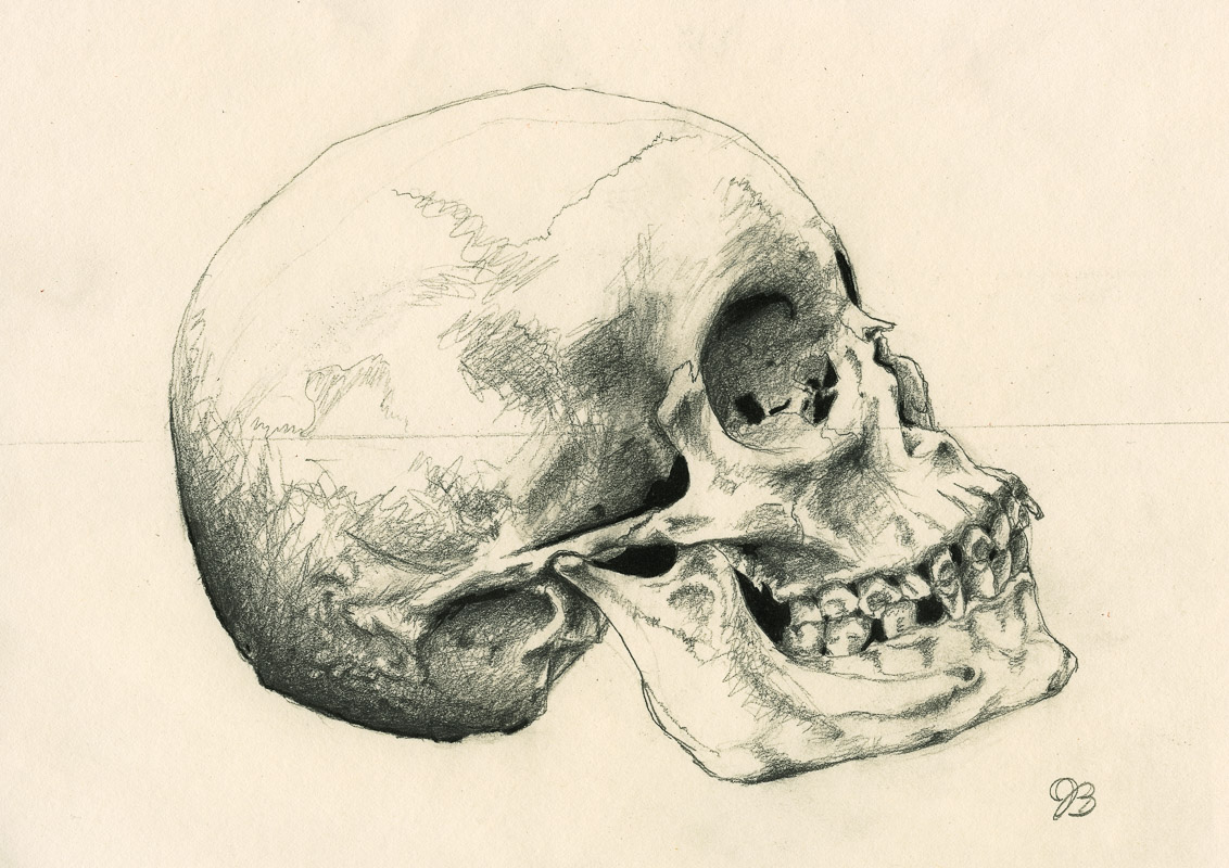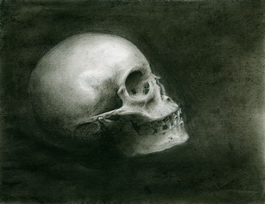 Skull, charcoal and graphite on copy paper, 8 ½” x 11”